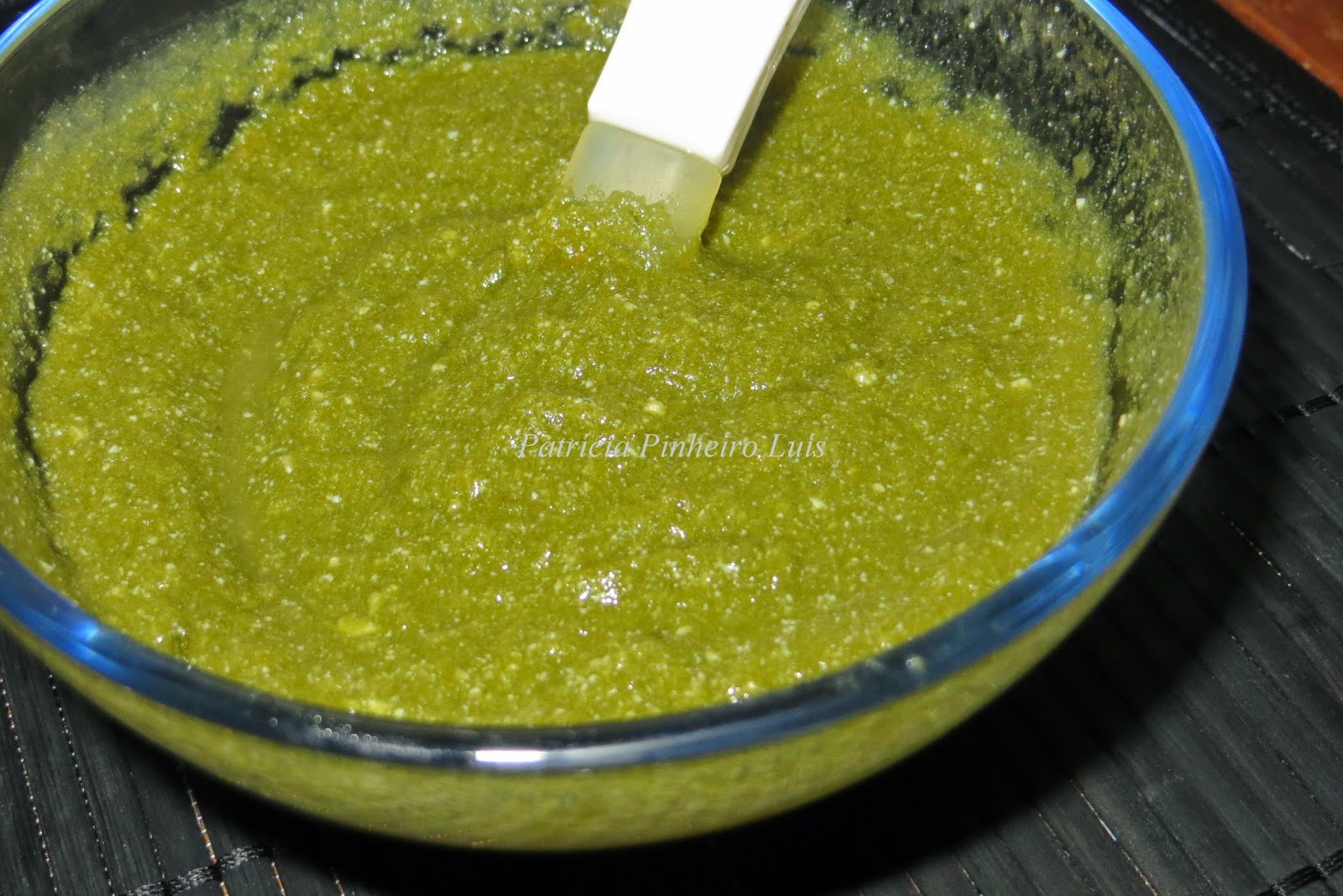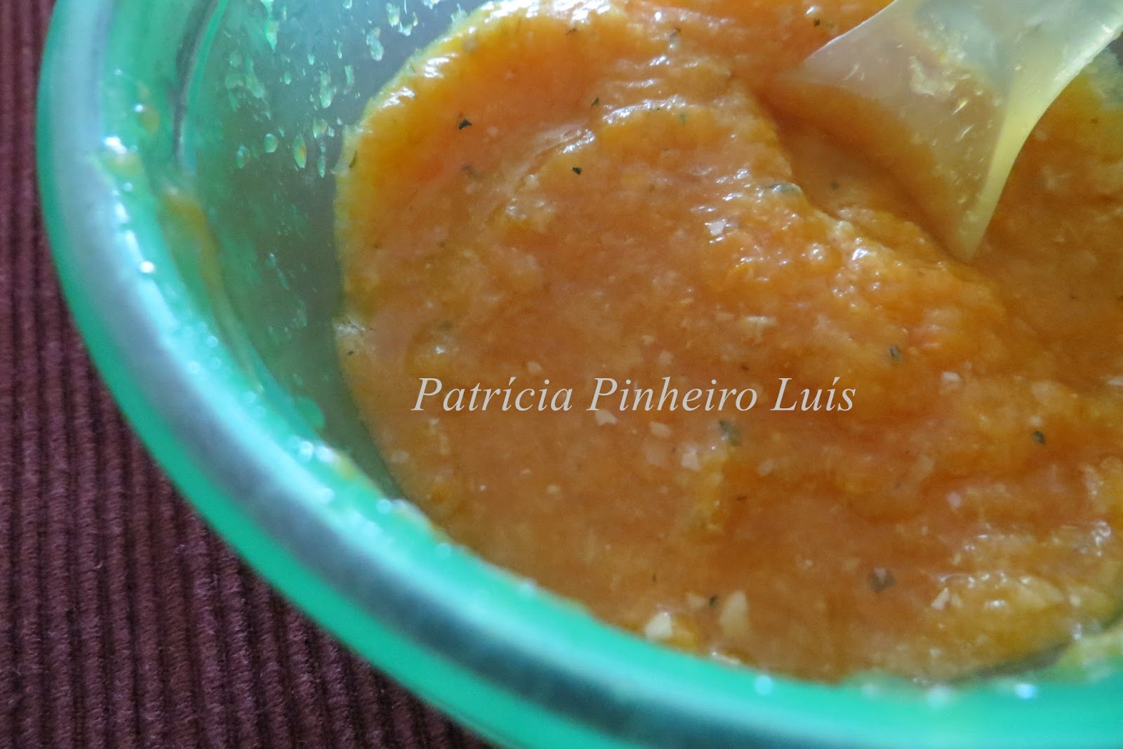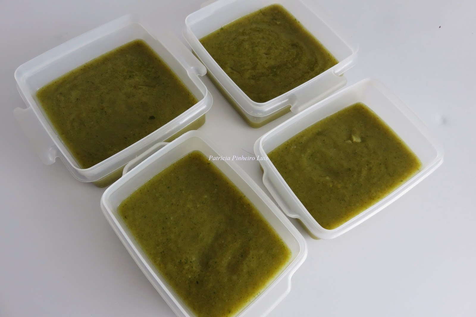 Triturar tudo a gosto, não adicionar sal, mas um pingo de azeite no final, sem deixar ferver.