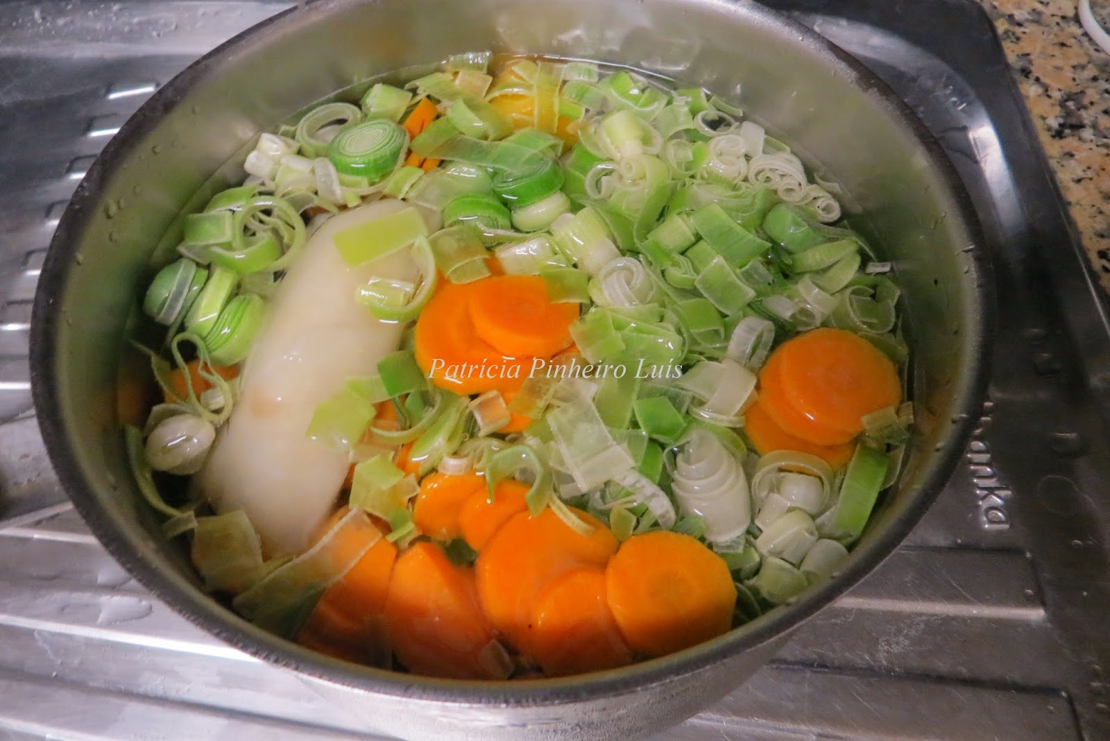 Cozer todos os ingredientes em água fervente durante 15 min aprox.